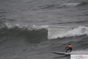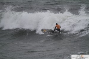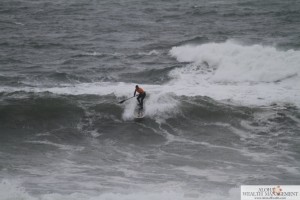 I then knew if the next was similar conditions I may even have a shot at getting in the finals heat on Sunday. We were glued to the weather channel on our phones looking for any optimistic forecasts but none were to be found. Saturday looked even worse with one of the biggest storms of the year forecast. The Friday heats had lots of different people riding different boards from sub 8 foot short board style SUP’s to longer heavier 10’s and even 11’s for the stability in the bumpy conditions. Still the smaller boards seemed to do better because of the double ups and compactness of the boards to stay in pocket better, and obviously they turn better for more points. The heats were re-seeded and would resume on Saturday in the afternoon for the SUP paddlers, because they would need time to finish and recover from the Dual-athon SUP Race to be held in the morning.