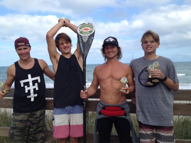 Congratulations to Team Rider Girard Middleton (2nd from the right in photo), who took 2nd place this weekend in this season’s final surf contest of the Eastern Surfing Association (ESA) Central… Open SUP Surf Division…. Girard will finish 2nd or 3rd overall for the year and qualify for ESA Regionals this April at New Smyrna Beach, Florida….